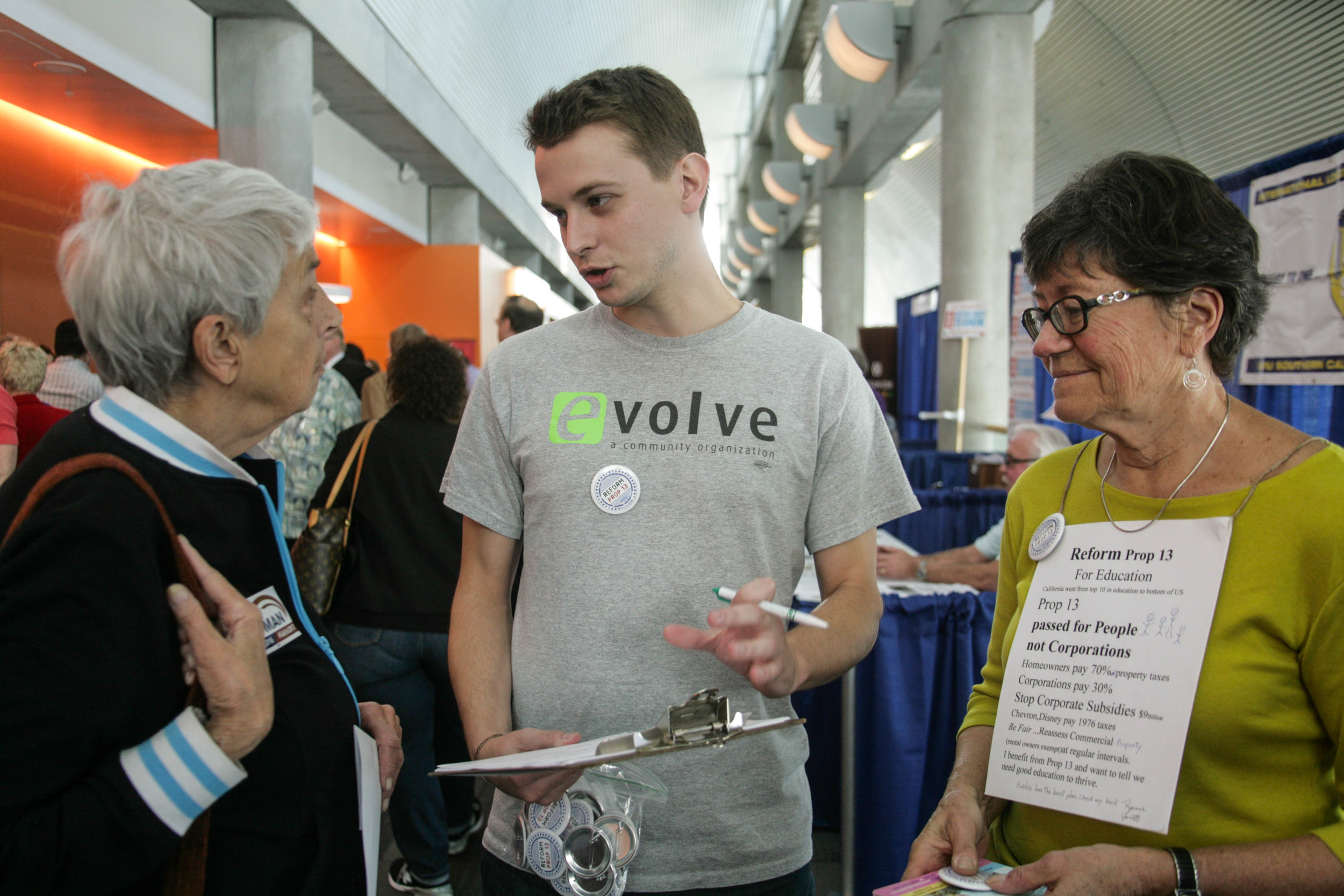 Evolve is a non-partisan, 501c(4) nonprofit founded in 2011. We believe that the most effective way to counter the corrupting power of money in politics is a long-term commitment to ground-up, grassroots organizing. We focus on issues that bring together middle class swing voters and the left-of-center base. We are 100% funded by individual donations from our 13,000 members from across California.